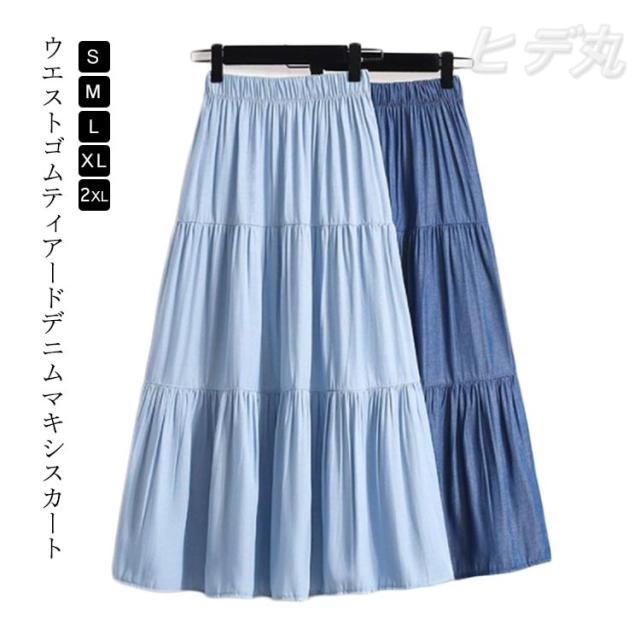 デニムロングスカート レディース 大きいサイズ ティアードスカート 薄い デニムスカート ウエストゴム デニムスカート デニム スカート 薄手 Aラインスカート 大きいサイズ ギャザー 夏 ロング 夏 ボトムス ロング 大人カジュアル 大人可愛い 夏