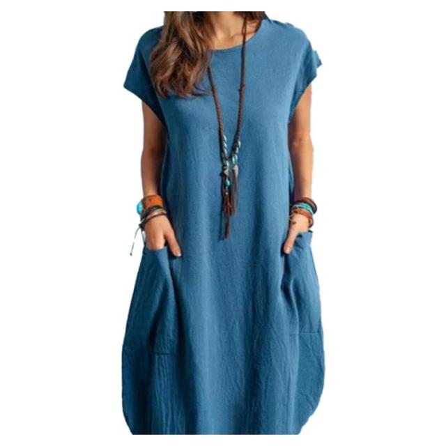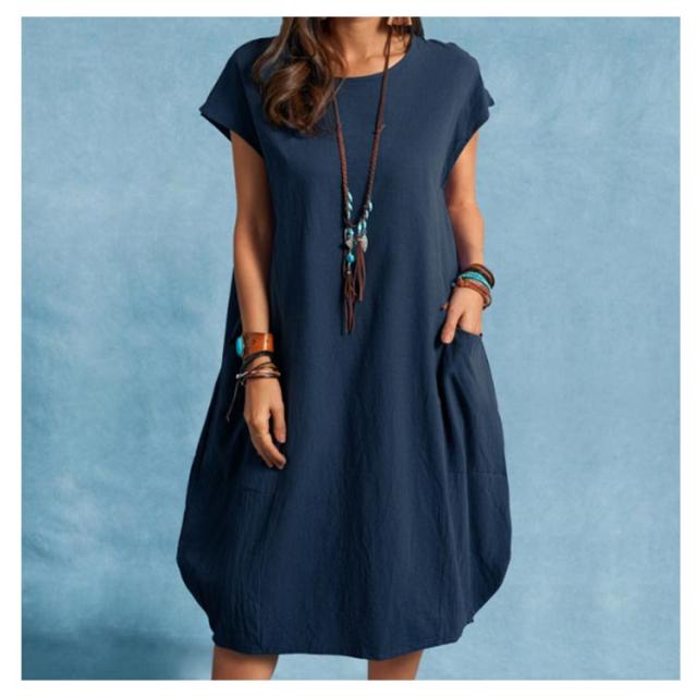ブラウス チュニック ワンピース チュニックワンピース シャツワンピース tシャツ ワンピース シャツ ポケット付き uネック ワンピース 膝丈 ワンピ ロング 夏 綿麻 コットンリネン チュニック 無地 半袖 大きいサイズ ゆったり カジュアル 部屋着