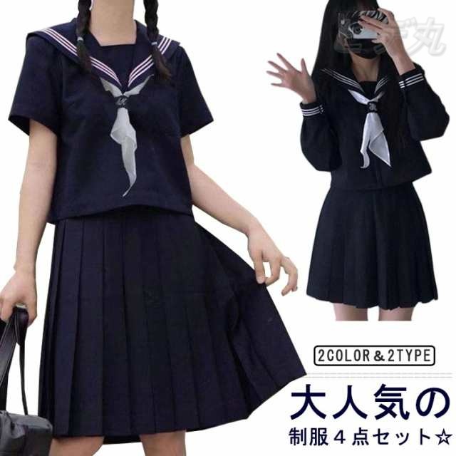 制服 4点セット 女子高生 セーラー服 スカート 紺 上下セット 中学生 高校生 学生服 スクール制服 制服コスプレ ハロウィン コスプレ 仮装 コスチューム スクール jk服 可愛い フォーマル 文化祭 卒業式 学園祭 発表会 送料無料