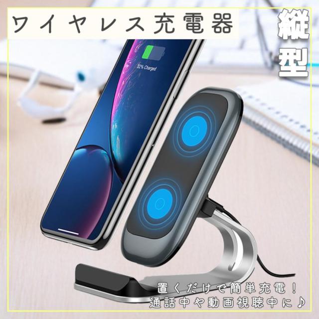 縦型 ワイヤレス充電器 最大15W Qi規格 スマートフォン Qi充電器 スマホ スタンド 縦置き 横置き 動画 通話 オフィス 置くだけ 全2色
