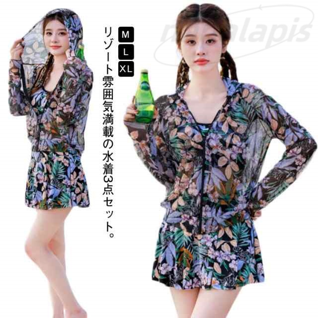 タンキニ 服みたいな水着 体型カバー レディース ビキニ 水着 水着 3点セット スカート付き シースルーパーカー ママ水着 20代 3 30代 40代 50代 日焼け防止 セパレート 温泉 海水浴 二の腕 太もも お尻 お腹