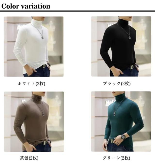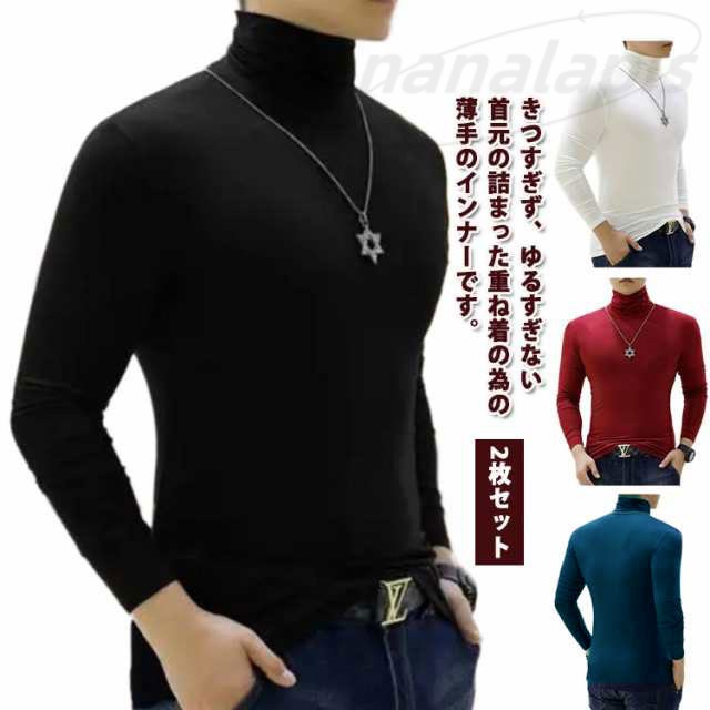 春 2点セット 無地 メンズ カットソー ハイネック tシャツ メンズファッション トップス ロングtシャツ スリム ロンt タイト ストレッチ 長袖 秋 冬 男性 ロングスリーブ 2点セット 秋服 秋物 綿 細身 シンプル 大きいサイズ インナー 黒 白 紺 ネイビー 茶色