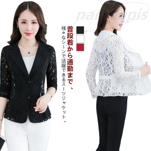 レディース サマージャケット ママスーツ アウター 夏 秋服 テーラードジャケット ジャケット 透け感 レース 春 大きいサイズ レーススーツ 上着 細身 オフィス お出かけ フォマールスーツ シースルー 春 ビジネススーツ 通勤 送料無料