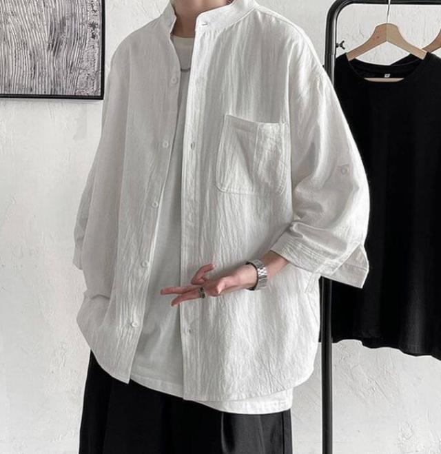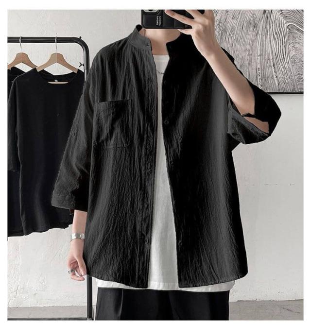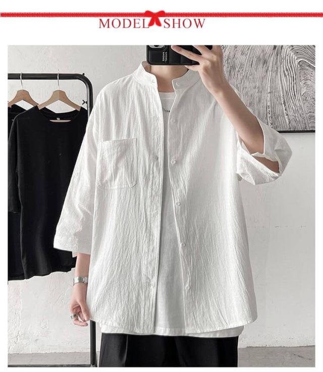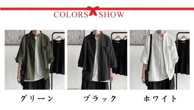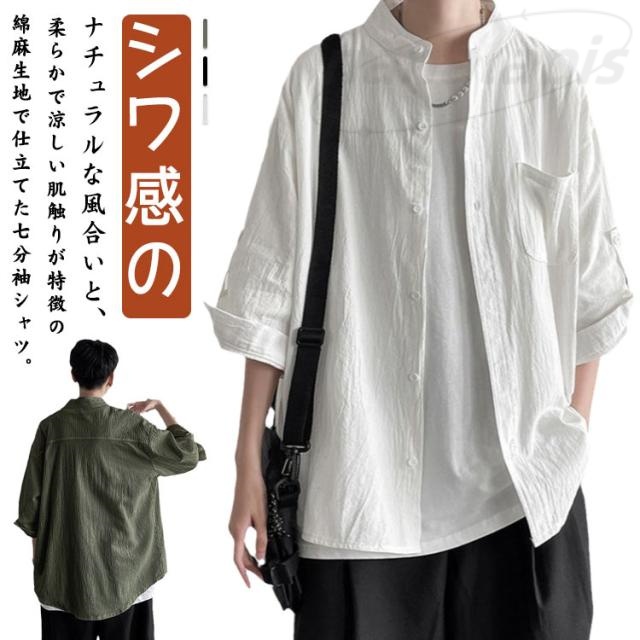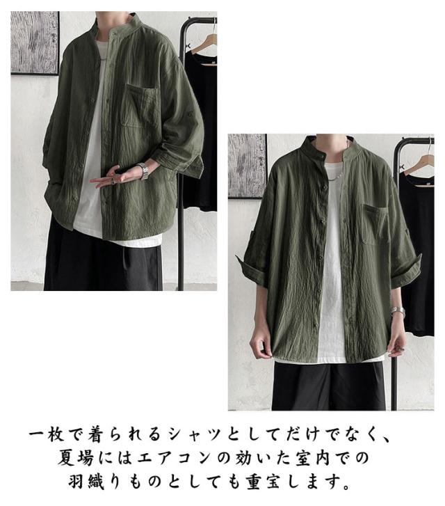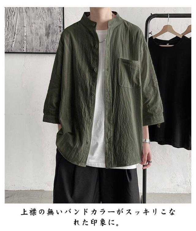 薄手 綿麻 カジュアルシャツ トップス バンドカラー リネンシャツ 七分袖 メンズ 涼しい 綿麻シャツ リネン リネンシャツ 春服 夏服 春 夏 ナチュラル カジュアル おしゃれ 父の日