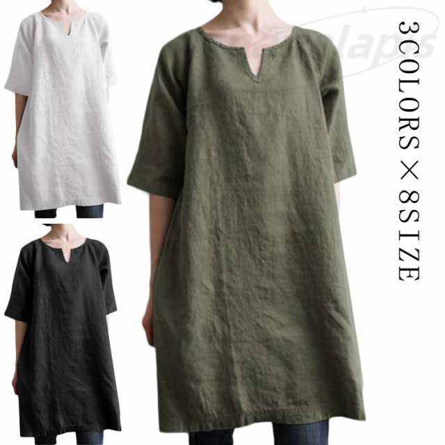 ルームウェア リネン リネン オシャレ ブラウス レディース 綿麻 トップス 大きいサイズ チュニックワンピース tシャツ 半袖 チュニック リネン ロングTシャツ 大人 可愛い カジュアル 部屋着 無地 スキッパー 体型カバー