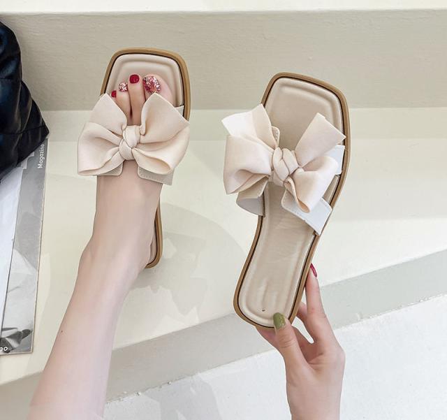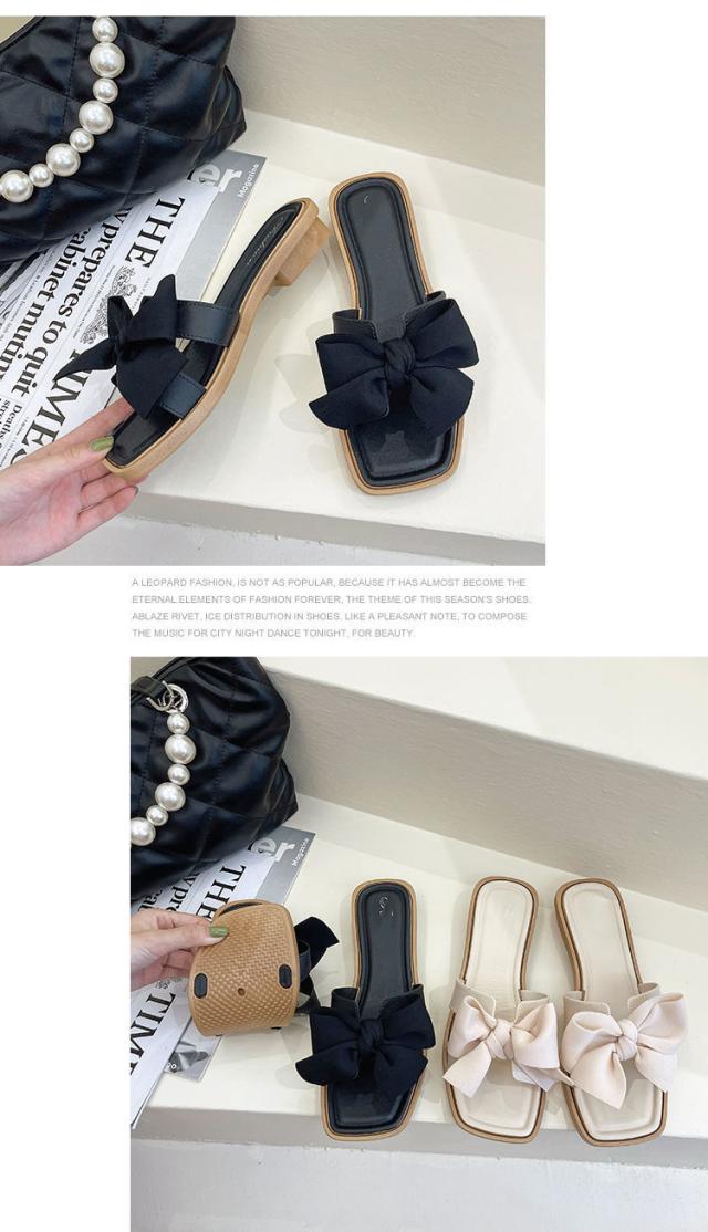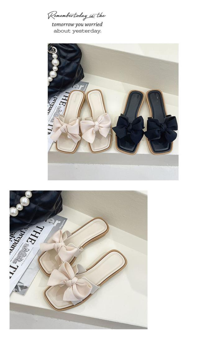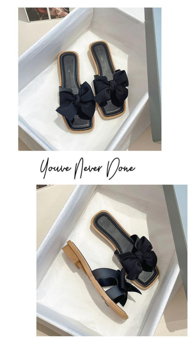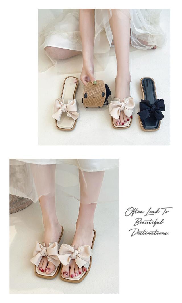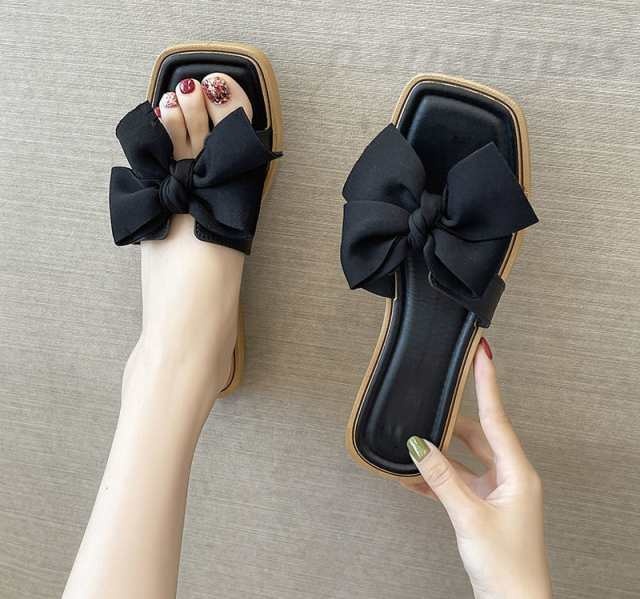 サンダル リボン ペタンコ ぺたんこサンダル レディース 歩きやすい スクエアトゥ ビーチサンダル スリッパ ミュール 上品 おしゃれ