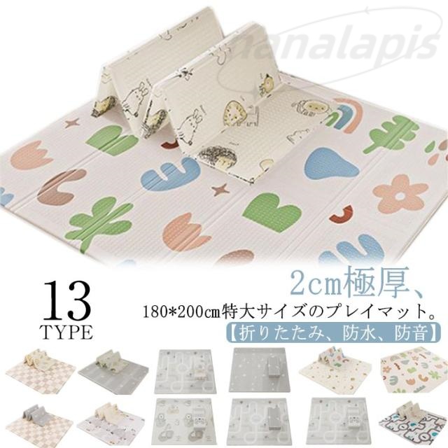 子ども プレイマット プレイマット 赤ちゃん 厚手 ベビーマット シームレス 2cm 折りたたみ プレイマット 極厚 お昼寝 床暖房対応 リバーシブル 防音 防水 抗菌 ベビー 大判 180*200cm コンパクト収納 春夏秋冬