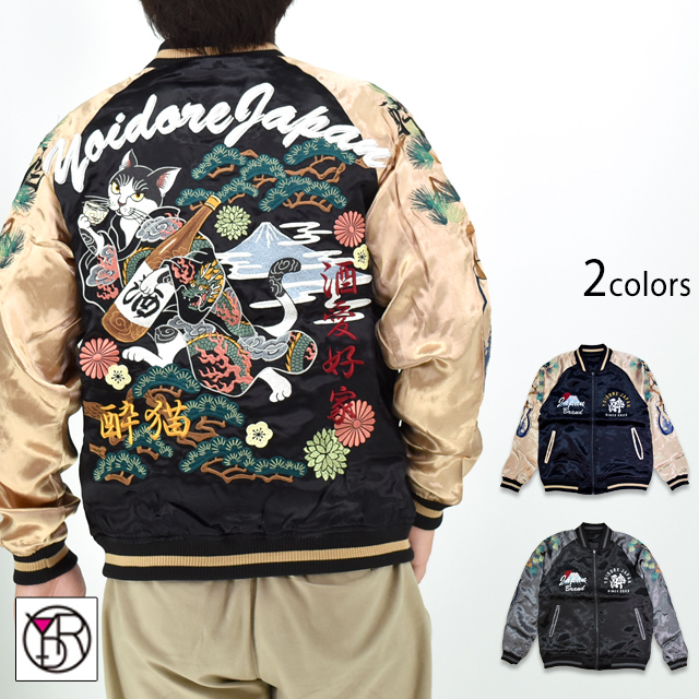 酔猫リバーシブルスカジャン YOIDORE 835100 ヨイドレ 酔いどれ 和柄 ネコ 刺繍 スーベニアジャケット ユニセックス