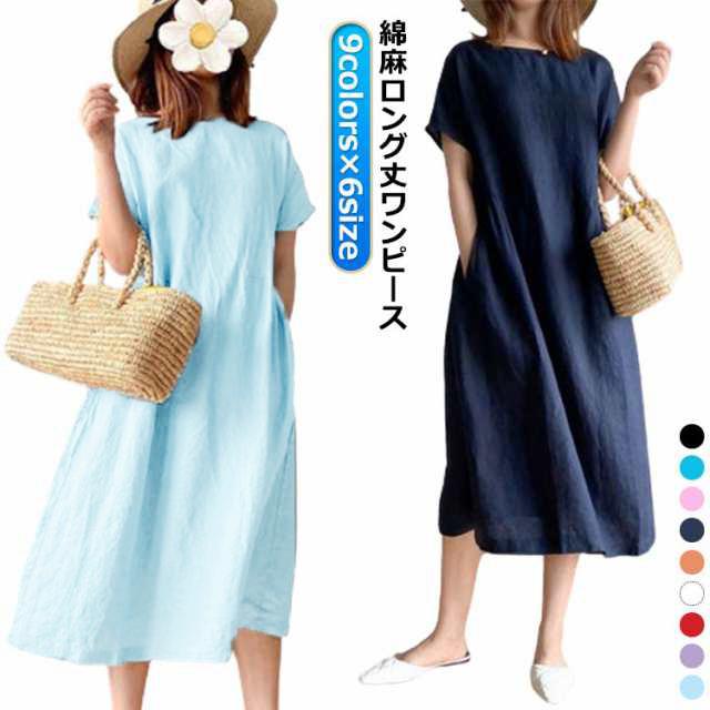 | 9colors×6size 綿麻ロング丈ワンピース 夏は1枚で着てサンダルやスリッポン、ビーチサンダルなどカジュアルで軽やかなコーデに | |