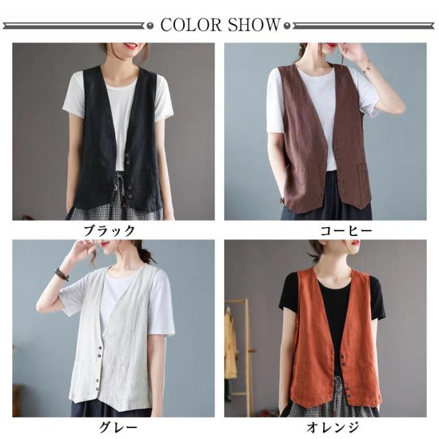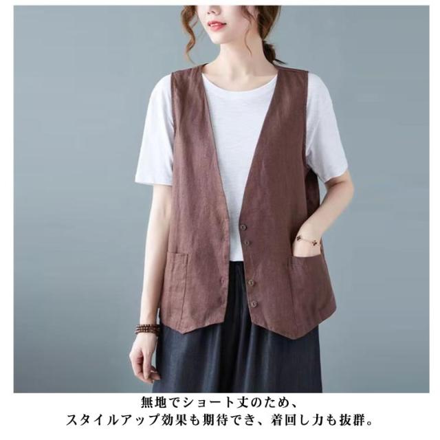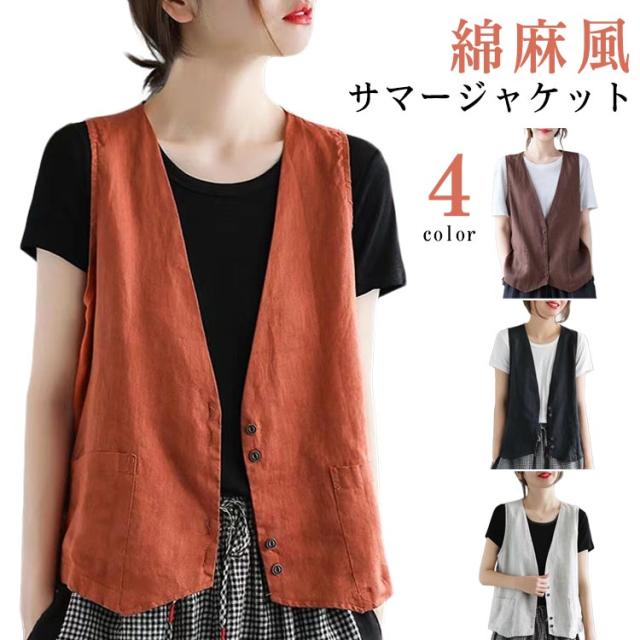 ベスト レディース サマーベスト 春夏 ゆったり ベスト ゆったり S~8XL ジレ 前開き ゴルフ 無地 薄手 シニア 夏ベスト 春 オフィス アウター 綿麻風 ベスト ショート丈 トップス 秋 夏 大きいサイズ レイヤード 着回し おしゃれ 20代 30代 40代