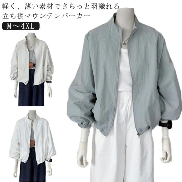 マウンテンパーカー ブルゾン レディース アウトドア ジャンパー スタンドカラー カジュアル 長袖 ライト UVカット 春 薄手 ジャケット ライトアウター 春夏 秋 釣り パーカー ウィンドブレーカー 立ち襟 ジャンバー 冷房対策