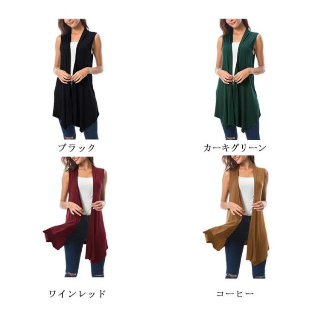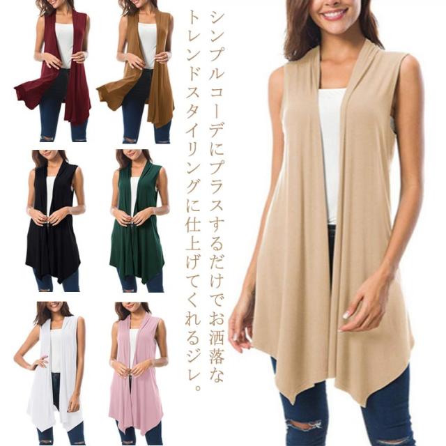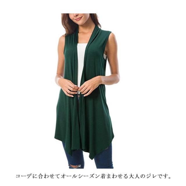 ロング ジレ ベスト ミディアム 無地 サマージレ 春 夏 ドレープ 羽織 ストレッチ ノーカラー ノースリーブ ロングベスト 透け感 レイヤード 重ね着 カーデ 定番 美シルエット 美ライン きれいめ お出かけ 春夏秋