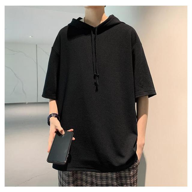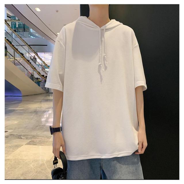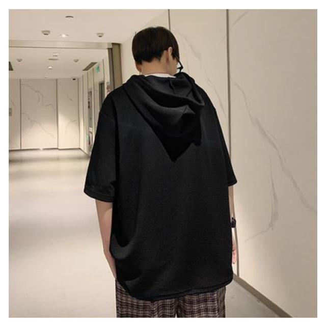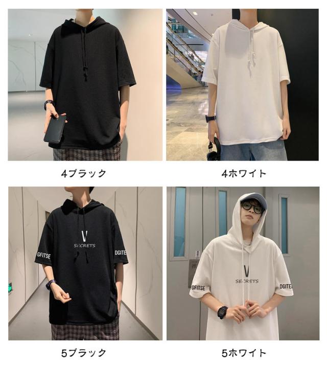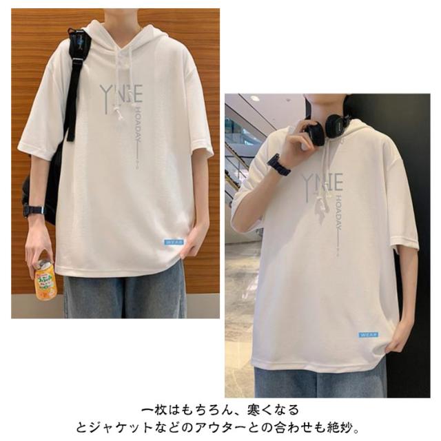 半袖 パーカー 半袖パーカー Tシャツ 大きいサイズ 夏 tシャツ プルオーバー 半袖パーカー スポーツ 無地 男性 カットソー 薄手 トップス メンズ ゆったり 柔らか シンプル ドロップショルダー リラックス 体型カバー カジュアル 学生