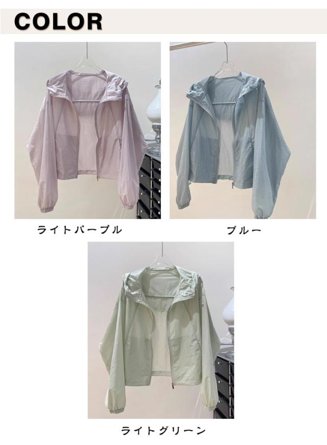 速乾 冷房対策 レディース サマージャケット 薄手 ライトアウター ラッシュガード ショート丈 マウンテンパーカー シアーブルゾン パーカー 春 夏 UV 涼しい フード付き UVカットパーカー 紫外線対策 アウトドア UV 通気性 軽量 かわいい