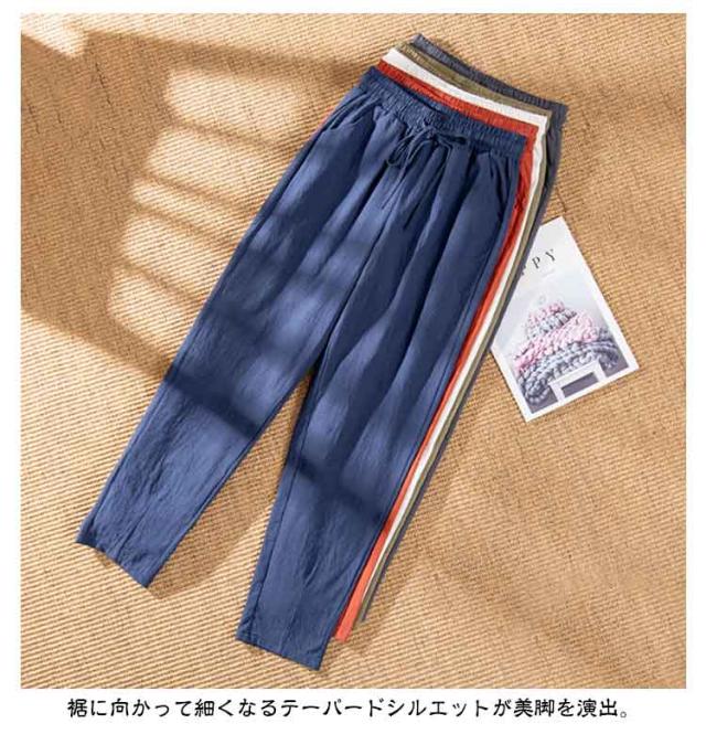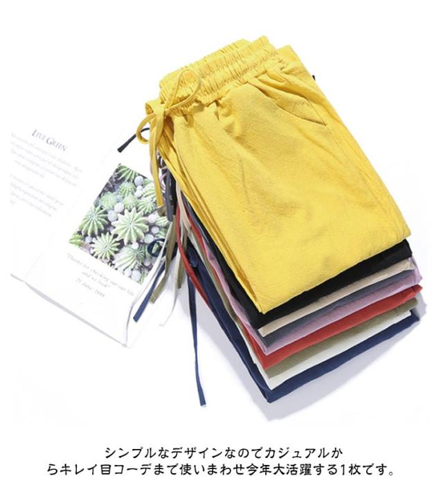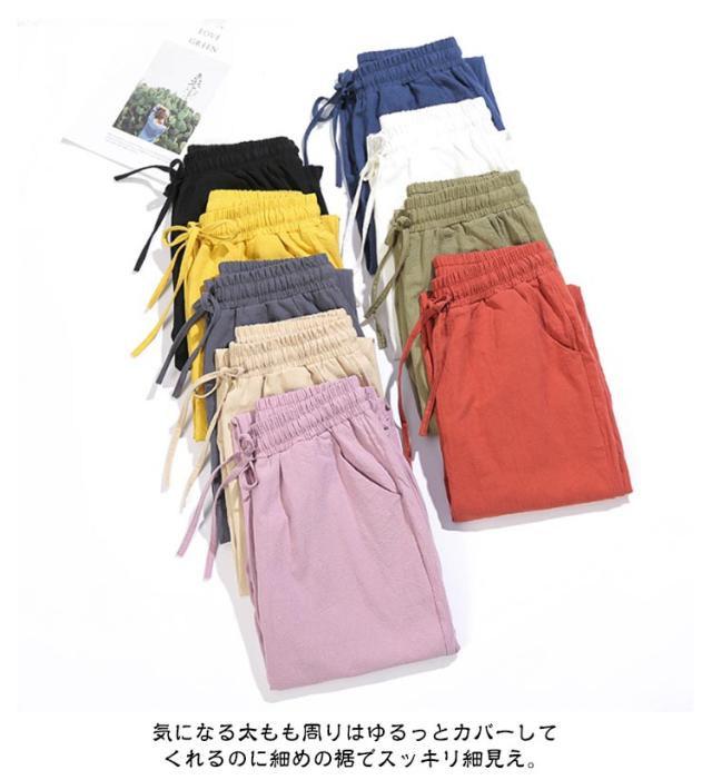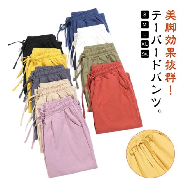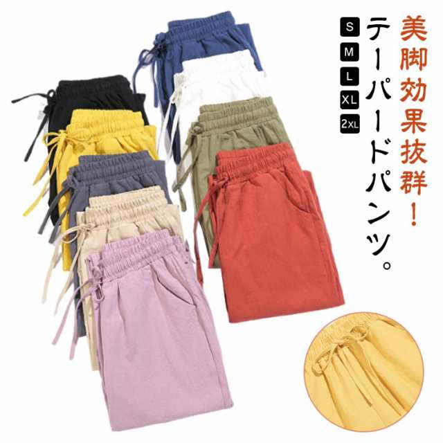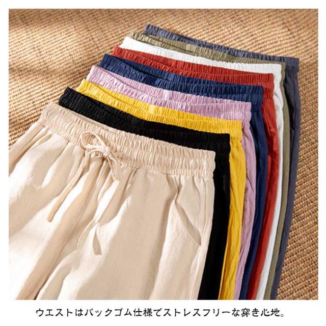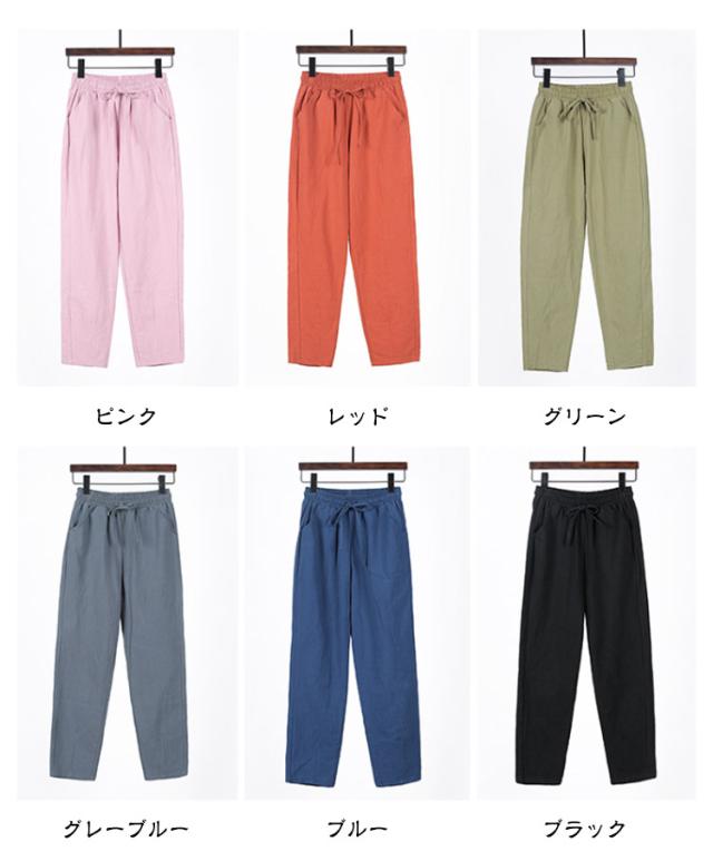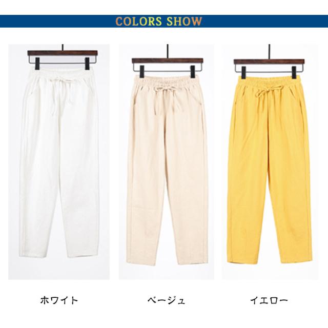 九分丈 9分丈 レディース クロップドパンツ コットン コットン 綿 ズボン ウエストゴム ゆったり 可愛い ボトムス チノパン 美脚 ボトムス カラーパンツ 体型カバー 大きいサイズ サルエルパンツ パンツ 春夏 薄手