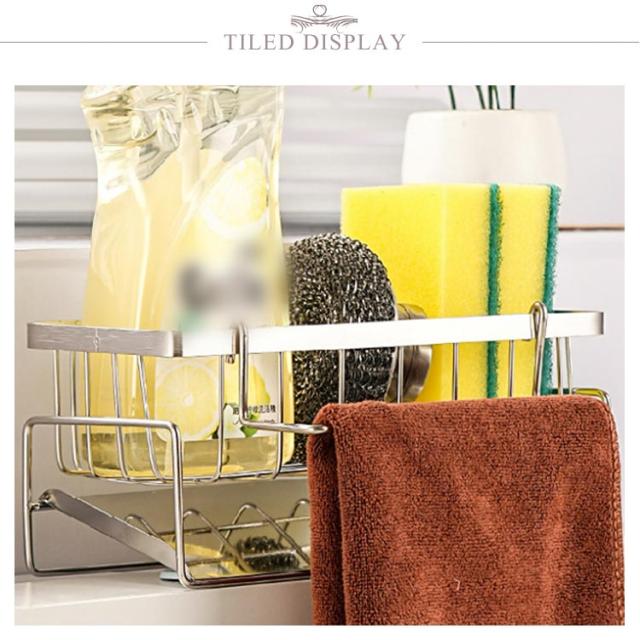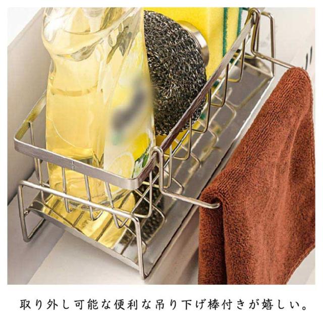 | シンク周りのスポンジや洗剤、ふきんなどのお掃除用の道具などを機能的に収納できるラックです。キッチンはもちろん、お風呂、トイレでも使用できます。 取り外し可能な便利な吊り下げ棒付きが嬉しい。 お手入れも楽ちん。 オールステンレスなのでいつでも清潔。 | |
