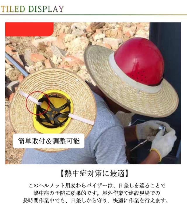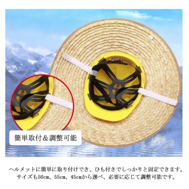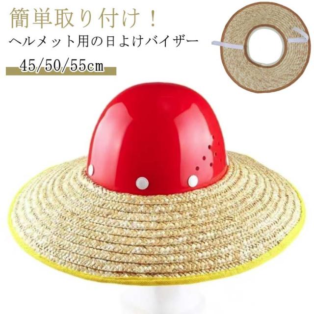 55cm 麦わらバイザー ヘルメットバイザー ヘルメット用 遮熱 ヘルメット取付用 工事現場 ヘルメット取付用 ひも付き 50cm ヘルメットサンシェード 熱中症対策 屋外 45cm ヘルメット用日よけ 建築現場 UVプロテクション 日差し除け ヘルメットなし