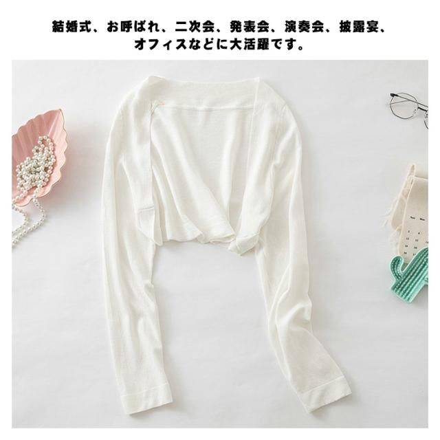 ボレロ 春 夏 秋 涼しい レディース 結婚式 お呼ばれ ニット カーディガン ショート丈 長袖 羽織り 薄手 きれいめ シンプル 上品 キレイめ 二次会 発表会 演奏会 披露宴 ホワイト ブラック 白 黒 ベージュ 送料無料