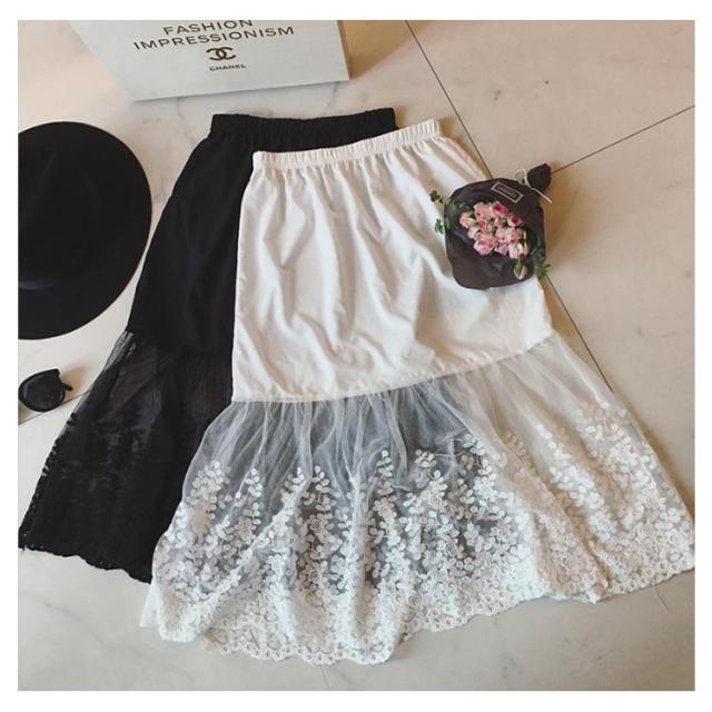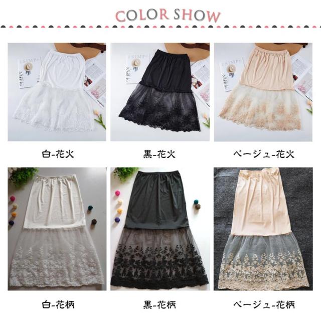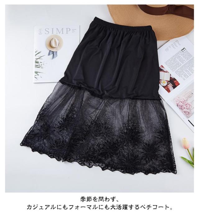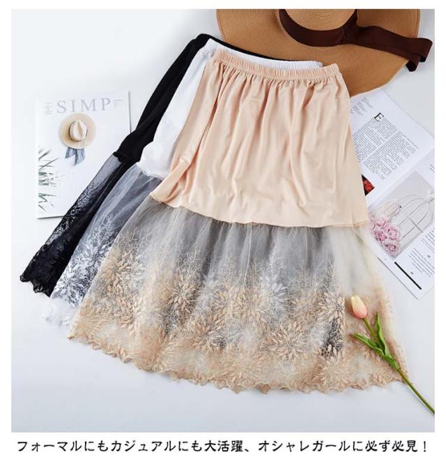 チラ見せ レース ペチコート ミモレ丈 スカート 刺繍 裾ふんわり スカート チュール インナー レディース ペチコート ペチコート 膝下丈 ドレスインナー ロングスカート 下着 フェミニン オシャレ 大人可愛い