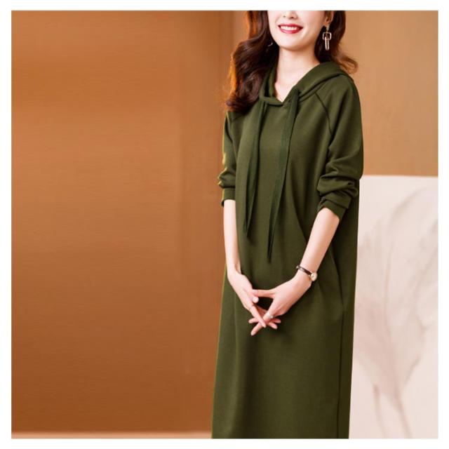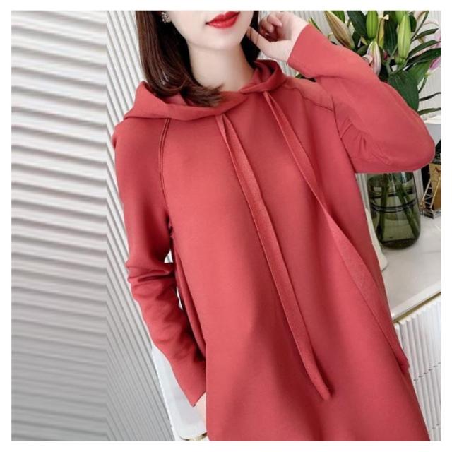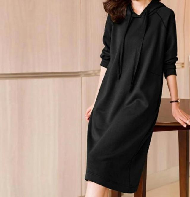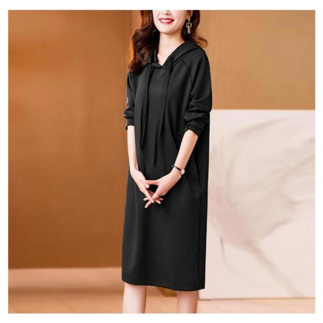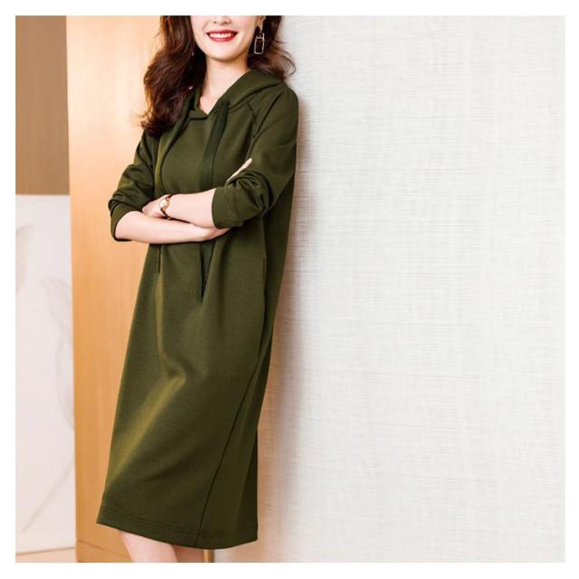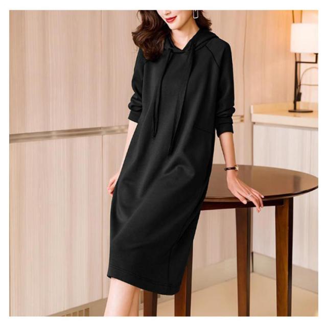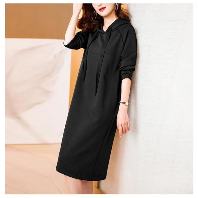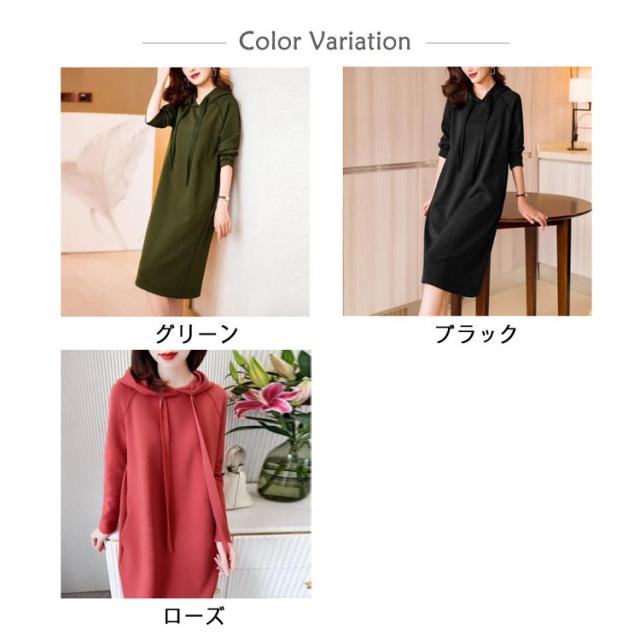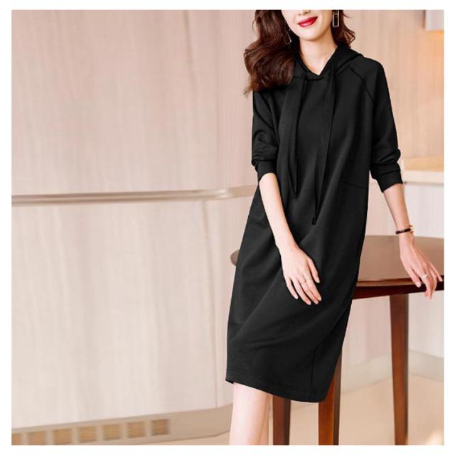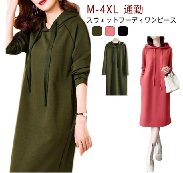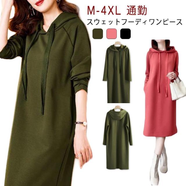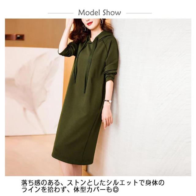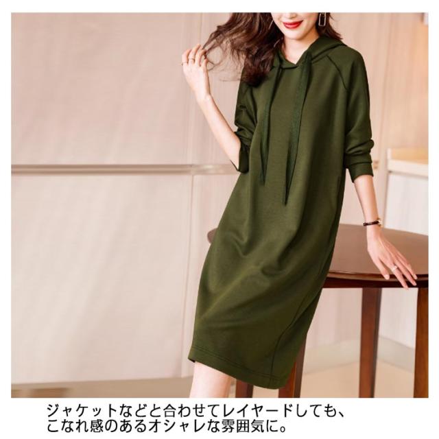 きれいめ レディース パーカーワンピース 体型カバー スウェット フード付き ポケットあり 無地 Iライン 大人 オフィスカジュアル 通勤 パーカーワンピース 春