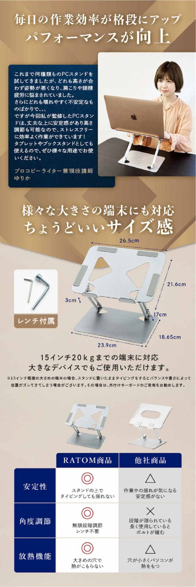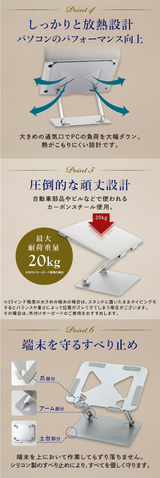 また、シリコンの滑り止めにより、パソコンを傷つけません。