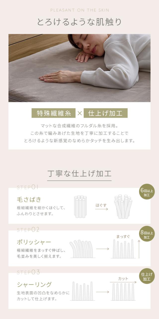ふんわり柔らかなミルクフランネル素材を表面に使用。片面起毛仕上げで、やさしいタッチと上品な質感を両立しました。