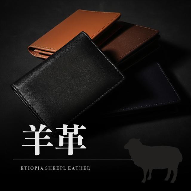 エチオピア産のシープレザー(本革)100%の名刺入れです。光沢が少なく、しっとりと手に吸い付くような質感です。