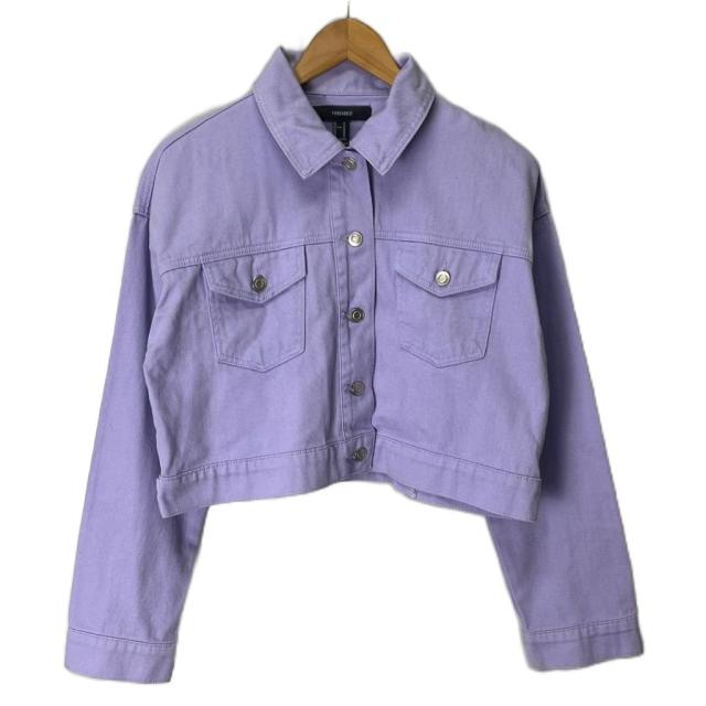 【中古】フォーエバー21 FOREVER21 クロップド丈 デニムジャケット カバーオール M 紫 パープル レディース