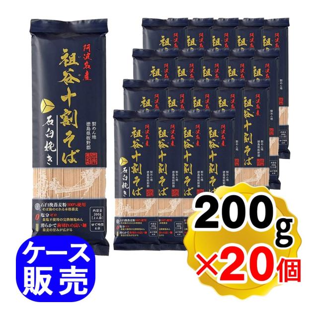 岡本製麺 祖谷十割そば 石臼挽き 200g×20個セット ケース販売 業務用 ギフト 阿波名産 無塩 塩分ゼロ 蕎麦 石臼挽き 徳島 祖谷そば