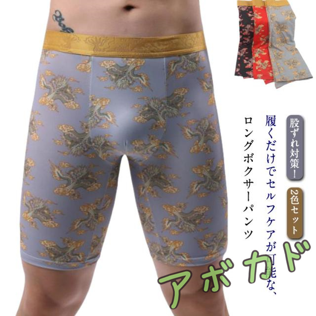 股擦れ 対策 ロングボクサーパンツ メンズ 2色セット メンズボクサーパンツ 男性下着 ボクサー パンツ 吸汗速乾 肌着 紳士 男性 ボクサー 下着 肌着 インナー 丈長め おしゃれ 涼しい ドラゴン 総柄 龍
