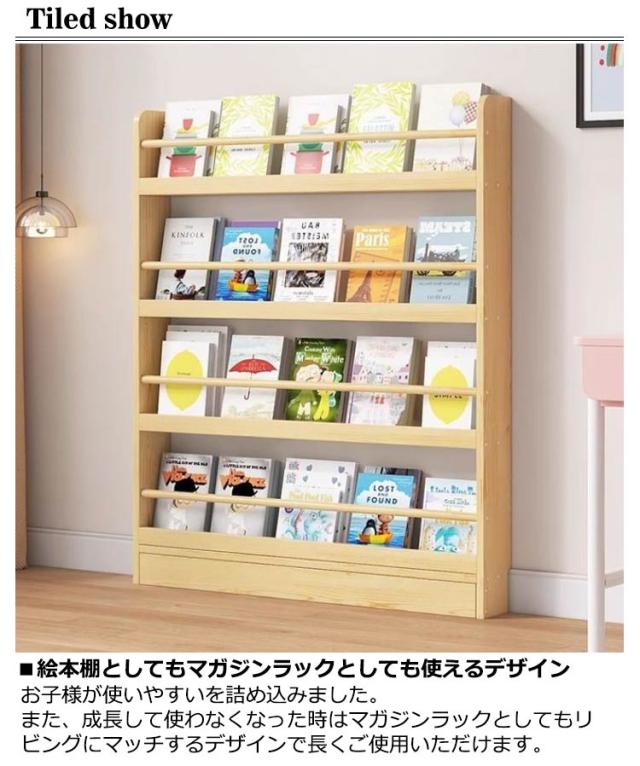マガジンラック スリム 絵本棚 絵本ラック 4段 3段 マガジンスタンド 本棚 スリム 幅50 奥行10 高さ120 ディスプレイラック 雑誌ラック 収納ラック 本棚 パンフレット スタンド 本収納 おしゃれ 木製 雑誌 絵本 本 収納 木目調 収納棚 ディスプレイマガジンラック