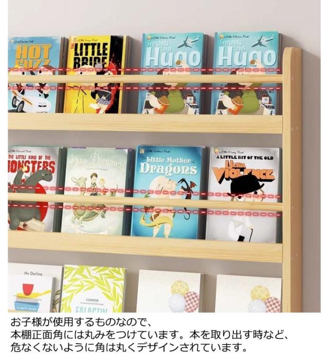| こどもたちが本を取りやすく表紙が見える本棚。お片づけの習慣も身につきやすいです。 ■絵本棚としてもマガジンラックとしても使えるデザイン お子様が使いやすいを詰め込みました。また、成長して使わなくなった時はマガジンラックとしてもリビングにマッチするデザインで長くご使用いただけます。 ■表紙が見える絵本棚でお気に入りの本がすぐ取り出せます。 お子様が成長してくると、あれが読みたい、これが読みたいなどお気に入りの一冊がでてきます。自分で取り出してしまえるように習慣づけるのにピッタリなのが表紙が見える本棚です。 ■子供でも大人でも使いやすいロータイプ お子様が成長した時は、リビングのマガジンラックとしても使えるようなオシャレなツートーンのデザインにしているので、長くご使用いただけます。部屋の中央に置いて間仕切りとしても機能します。 お子様が使用するものなので、本棚正面角には丸みをつけています。本を取り出す時など、危なくないように角は丸くデザインされています。 | |