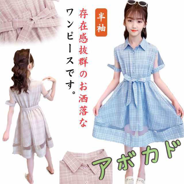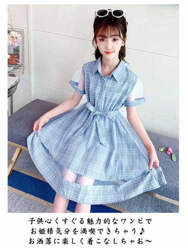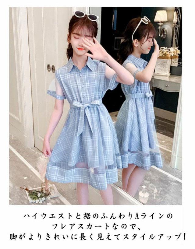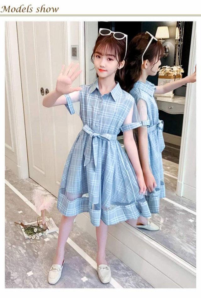 子供服 半袖 ワンピース ドレス チュニック チェック柄 ガールズワンピース 夏 リボン 膝丈 Aライン プリンセス カジュアル 姉妹 普段着 通園 通学 パーティードレス 発表会 おしゃれ