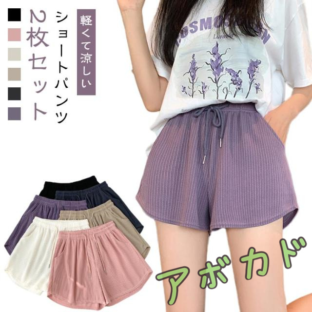 2枚セット ショートパンツ レディース 薄手 涼しい ワイドパンツ 無地 ルームウェア スポーツウェア ルームウェア アウトドア カジュアル オシャレ 可愛い ウエストゴム ボトムス シンプル ポケット付き 女子 海 送料無料