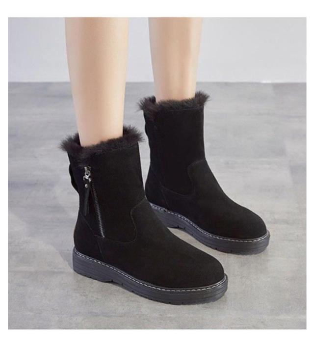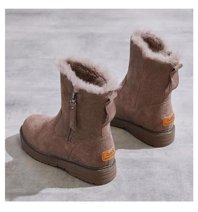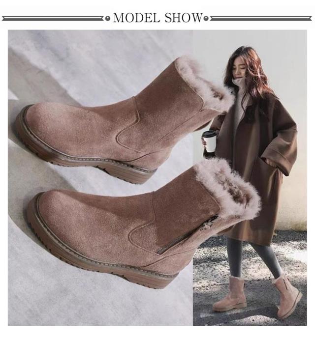 | 冬の寒さに負けないスノーブーツは雪や雨の日・冬のお出かけに! アッパーはスエード素材を使用しており、ふんわり柔らかい。 撥水性が優れているPU革を採用され、防水・保温効果があり 履き口にファスナー付きで、脱ぎ履きしやすい。 ブーツのライニング全体にボア素材使用、足を暖かく包み込んでくれる 凹凸のアウトソールは、しっかり地面をキャッチする滑りにくく、安心して歩いていただけます | |