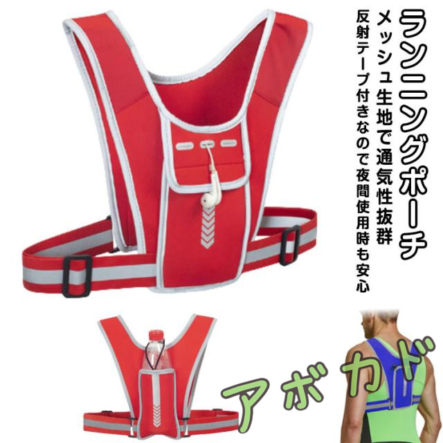 ランニングポーチ ランニングバッグ ボディバッグ ベストタイプ チェストバッグ メッシュ 通気性 反射テープ 収納 ポケット スマホポーチ スポーツ ジョギング サイクリング ウォーキング フィッシング 釣り アウトドア 夜間 メンズ レディース 男女兼用