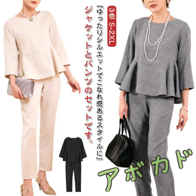 セットアップ スーツ レディース 春 秋 セットアップスーツ フリル ママスーツ ジャケット パンツスーツ フォーマル セレモニー 上下セット おしゃれ 入学式 卒業式 卒園式 入園式 母親 結婚式 セレモニースーツ ママ 母 服装 母親 大きいサイズ