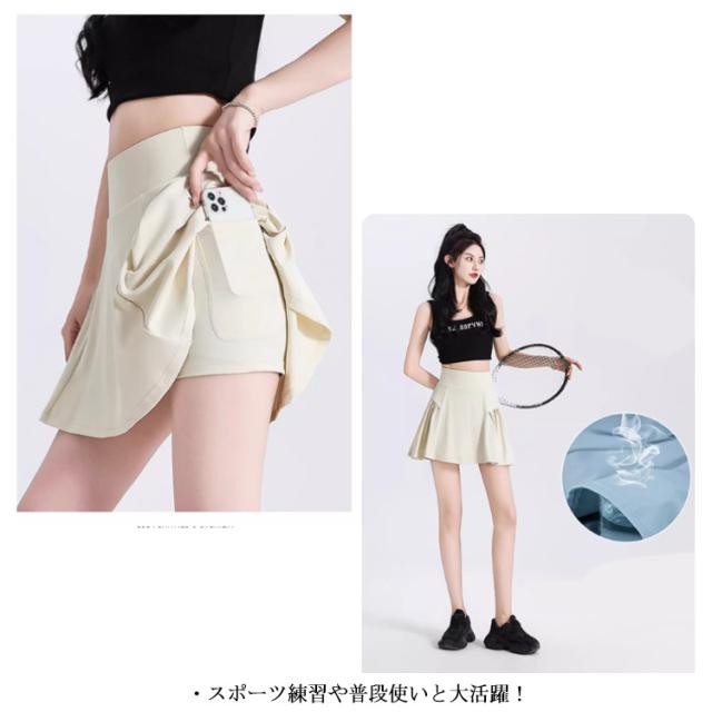 ランニング スカート ジム ヨガ スポーツ フィットネス テニス ダンス ゴルフ ストレッチ インナーパンツ付き レディース ランニングスカート フレア 美脚 足長 着痩せ ウォーキング
