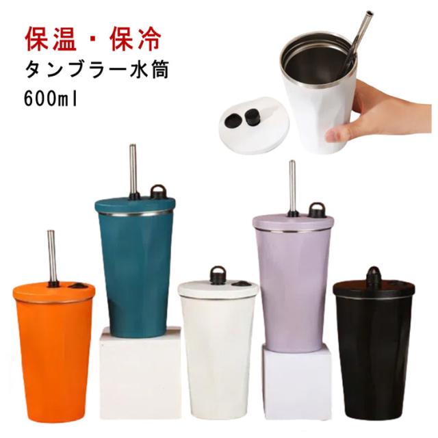 蓋付き タンブラー 保温 保冷 ストロー タンブラー 水筒 持ち運び 600ml こぼれない 二重構造 ステンレスマグカップ 大容量 オフィス ステンレス コーヒーカップ レジャー 2way コンパクト プレゼント アウトドア クリスマス プレゼント ギフト