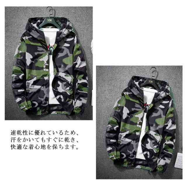 UVパーカー メンズ 長袖 迷彩柄 涼しい ブルゾン ジャケット UVカット 紫外線対策 夏服 日焼け止め 薄手 軽量 速乾 撥水 冷感 トップス アウター フード付き 20代 30代 春 秋 送料無料