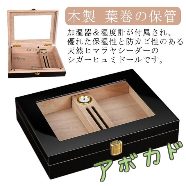 | 加湿器&湿度計が付属され、優れた保湿性と防カビ性のある天然ヒマラヤシーダーのシガーヒュミドールです。 クリアトップのヒュミドール。透明だから、中身がはっきり見える! 留め具部分も高級感のあるゴールド金具を採用した、さり気ない部分まで目を惹くデザイン。 シガー愛好家として、自身やあなたの友人に完璧なギフト! | |