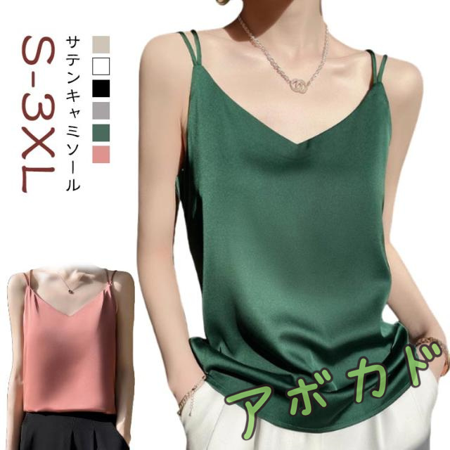| オールシーズン使えて、サテンが女性らしく大人っぽいキャミソール。【S?3XL】 カーディガンやシアートップスのインナー使いなど色々なスタイルに着回せる。 深Vネックタイプデコルテを綺麗に魅せてくれます。 ダブルストラップが華奢見せポイント。 品のあるほどよい光沢感もコーディネートを格上げしてくれるポイントに。 シンプルながら1枚で存在感のあるアイテムです。 | |