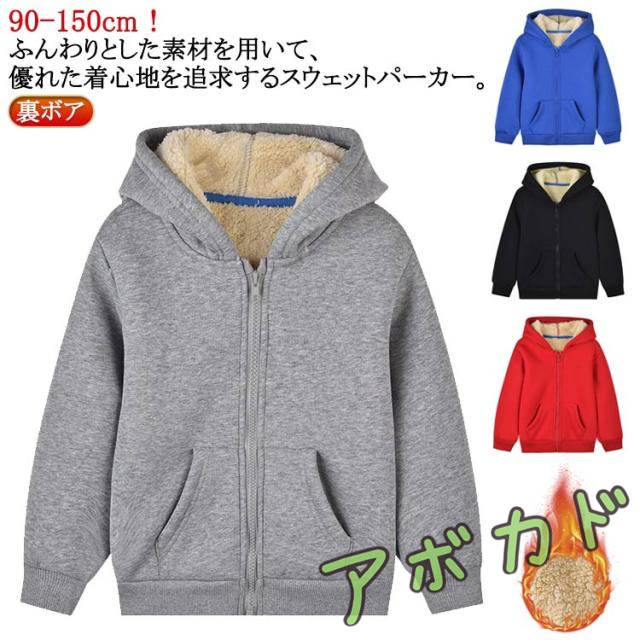 裏ボア パーカー 裏起毛パーカー 女の子 男の子 裏ボアパーカー 春 秋 冬 子供服 学生 通学 保温 裏起毛 厚手 防寒 暖かい 小学生 中学生 高校生 ジップアップパーカー パーカー フード付き スクールパーカー スクール 送料無料 90-150cm
