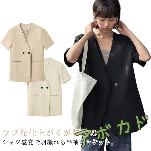 ノーカラージャケット サマージャケット カーディガン 前開き レディース シャツジャケット 半袖 ジャケット ライトアウター 日焼け対策 冷房対策 ゆったり カジュアル 女性 OL 通勤 オフィス 大人可愛い 春夏 サマースーツ アウター