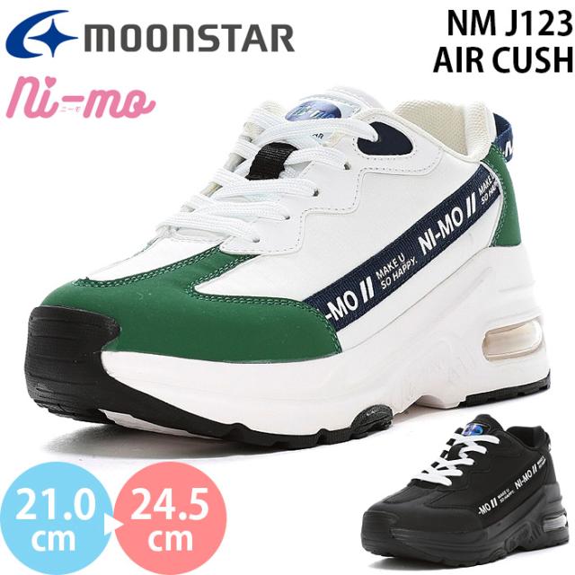 ムーンスター ニーモ NM J123 AIR CUSH moonstar ni-mo キッズ ジュニア 厚底スニーカー ダッドシューズ ガールズ 女の子 子供靴 運動靴 nimo グリーン ブラック 2025春夏 nmj123