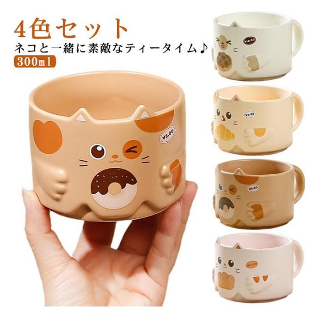 スタッキングマグカップ ねこ 猫 スタッキング ネコ 300ml 4色セット マグカップ 収納 おしゃれ 重ねられる かわいい スタッキングマグカップ 動物