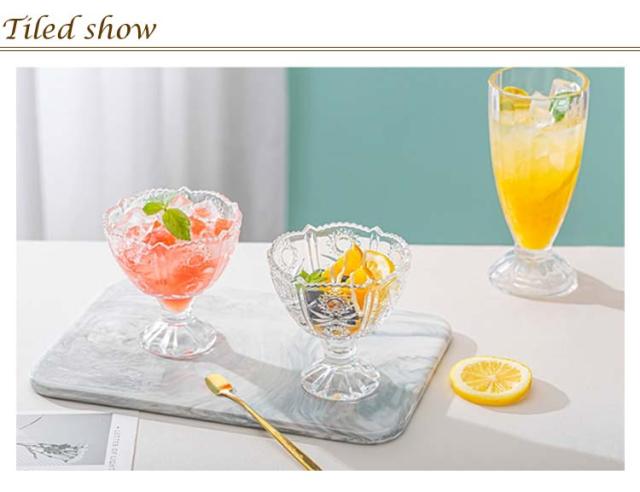 デザートグラス カップ アイスカップ ガラス ファンテン グラス 強化ガラス デザートカップ パフェグラス 食器 【6個セット】 エンボスグラス 脚付き 食洗機対応 小鉢 サンデー パフェ おしゃれ かわいい カフェ 喫茶店 業務用