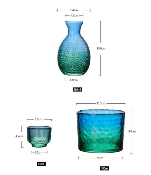 | サイズについての説明 | おちょこ:4x5.5cm/88g/35ml 徳利:13x4x7.5cm/154g/380ml 燗器:9.5x10.5cm/514g/550ml |