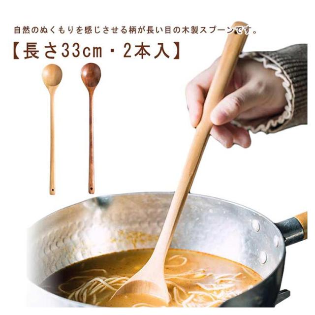 木製 2本入 天然木 ロングスプーン 33cm シンプル 送料無料 おしゃれ 柄の長いスプーン カフェ風 コーヒースプーン パフェスプーン 高耐熱性 調理スプーン 攪拌スプーン デザートスプーン ナチュラル スプーン