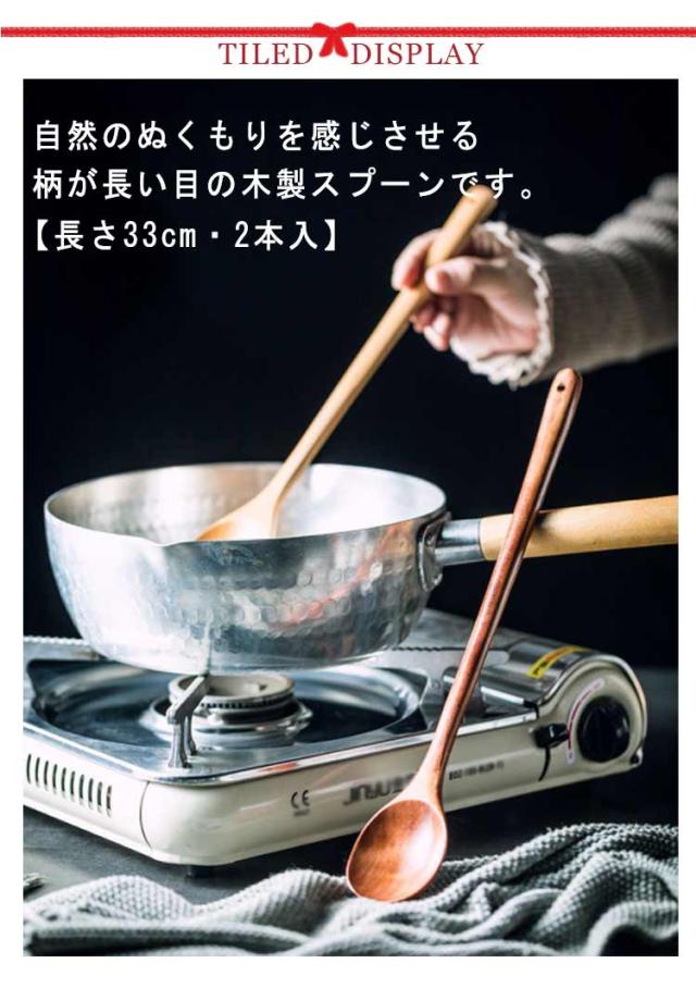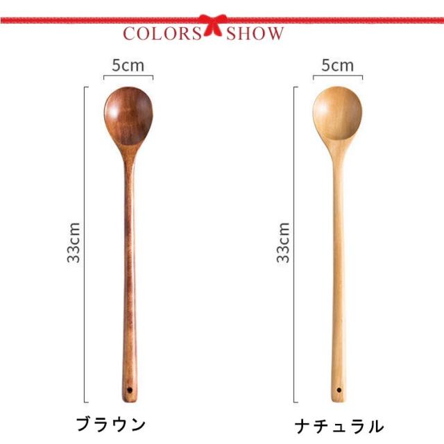 | 自然のぬくもりを感じさせる柄が長い目の木製スプーンです。【長さ33cm・2本入】 スプーンは、深さがあるお皿にも使えるよう、柄の長さとサイズにこだわりました。 優しい木のぬくもりを感じるアイテムは、手になじみやすいデザインです。 熱を通さないので、お子様やご高齢の方にも安心してお使いいただけます。 業務用にもお勧めです。 | |